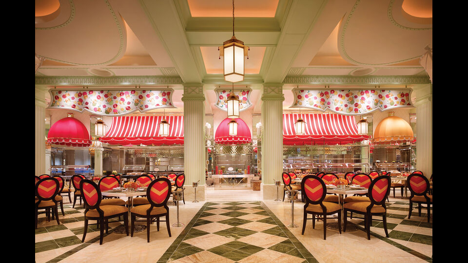 The Buffet at Wynn Las Vegas features global cuisine with 15 live-action cooking stations presenting rotisserie grilled steakhouse cuts, coast-to-coast seafood and over 120 artfully presented dishes. Operating hours for breakfast Monday through Friday are from 7:30 to 11 a.m., for lunch from 11 a.m. to 3:30 p.m. and dinner from 3:30 until 9:30 p.m. Brunch is served on Saturday and Sunday from 7:30 a.m. to 3:30 p.m. with gourmet dinner hours from 3:30 p.m. to 9:30 p.m.