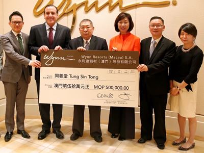 Macau, November 24, 2015 - Wynn is committed to giving back to the community and contributing to the efforts of local charitable organizations. Today, Wynn donated MOP 500,000 to Tung Sin Tong to support their provision of charitable services to the people in need in Macau, including the elderly, the disabled and the underprivileged children.