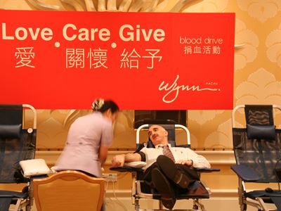 Macau, November 13, 2006 –Wynn Macau employees gave blood today in response to a call from the Macau Blood Transfusion Centre, which is badly in need of blood supplies, including rarer blood types, to stock Macau's hospitals and healthcare centers.